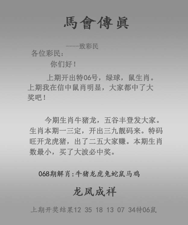 068期:正马会传真