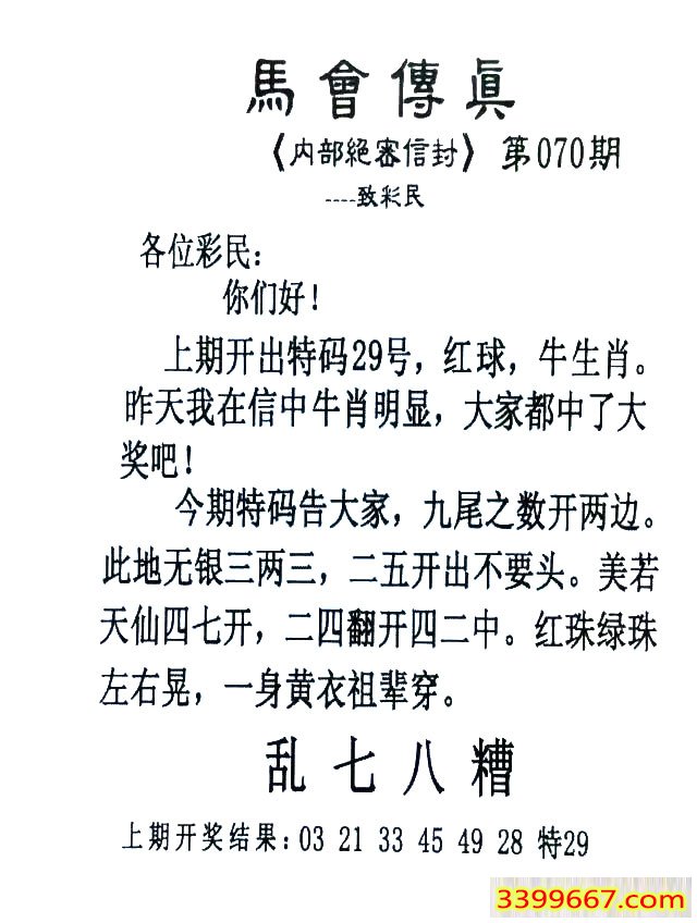 070期:首发推荐:≮馬會傳眞≯→(香港正版)