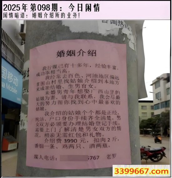 | 主题 :098期今日闲情①:婚姻介绍所的业务! |