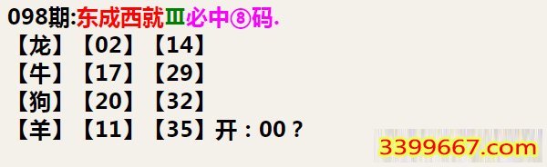| 主题 :098期:东成西就Ⅲ必中⑧码 |
