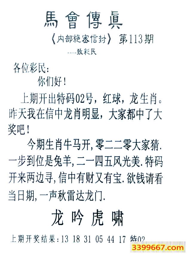 | 主题 :113期:首发推荐:≮馬會傳眞≯→(香港正版) |
