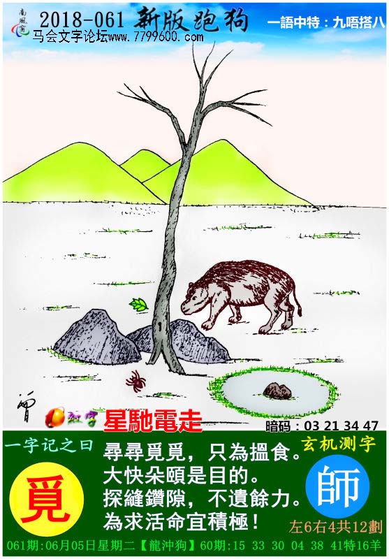 | 主题 :061期:新版跑狗一字記之曰【覓】玄機測字《師》 |