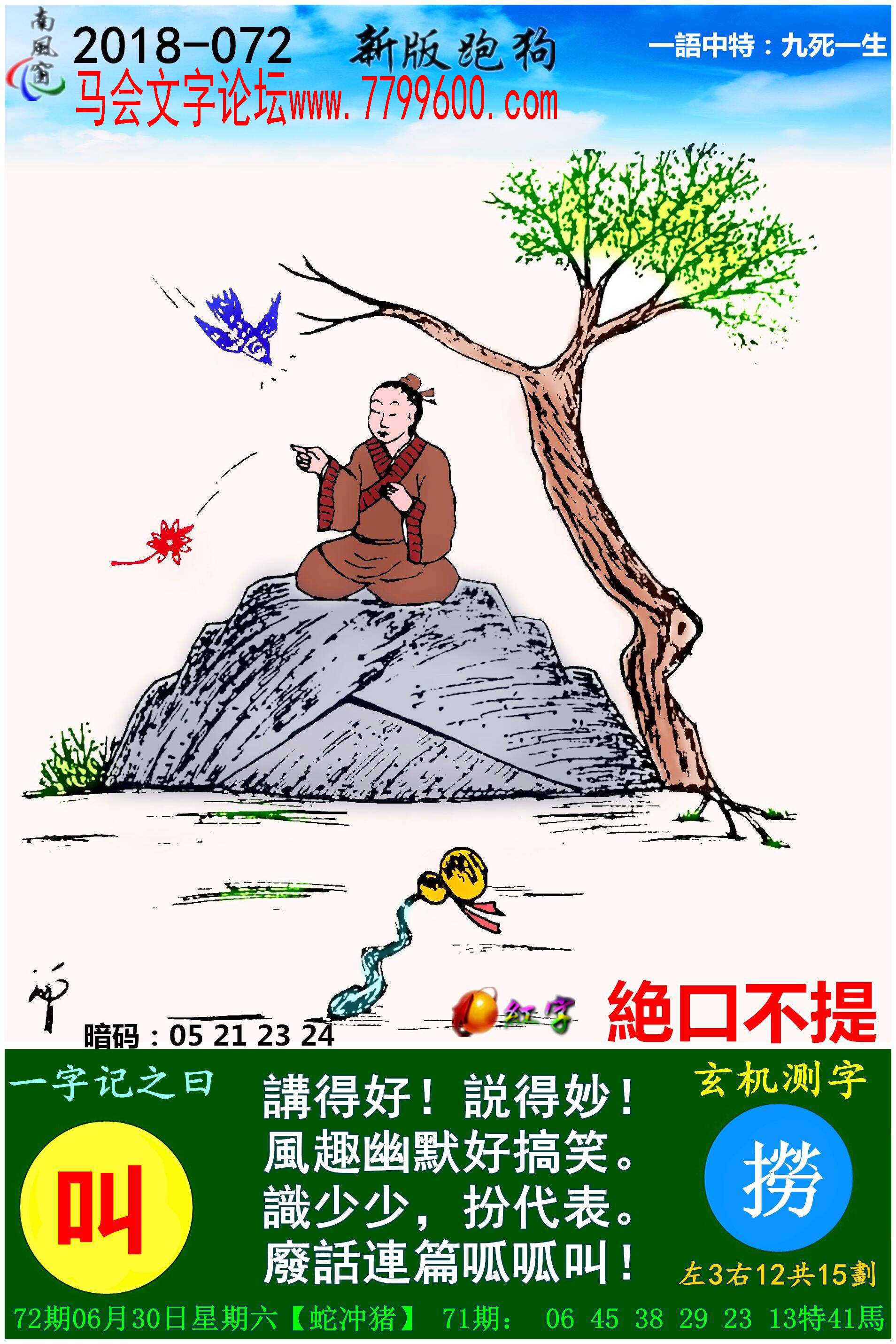 | 主题 :072期:新版跑狗一字記之曰【叫】玄機測字《撈》 |