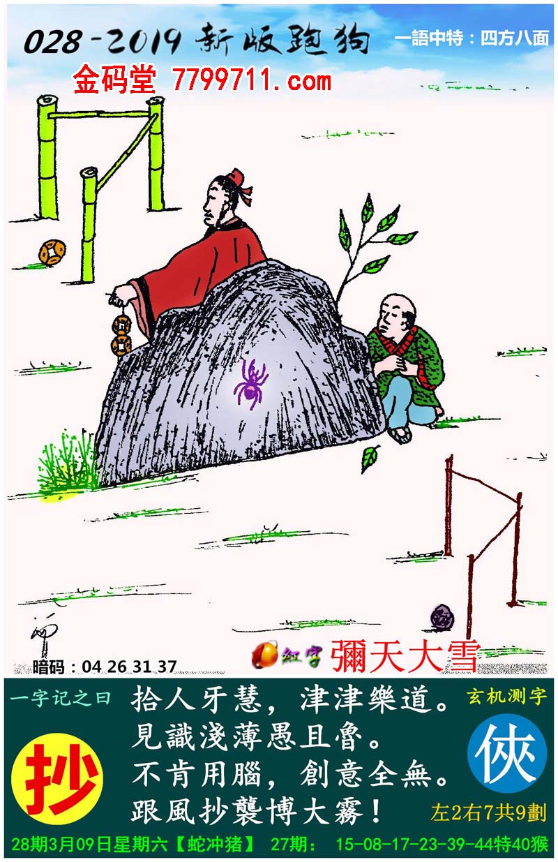 | 主题 :028期:新版跑狗一字記之曰【抄】玄機測字:《俠》 |