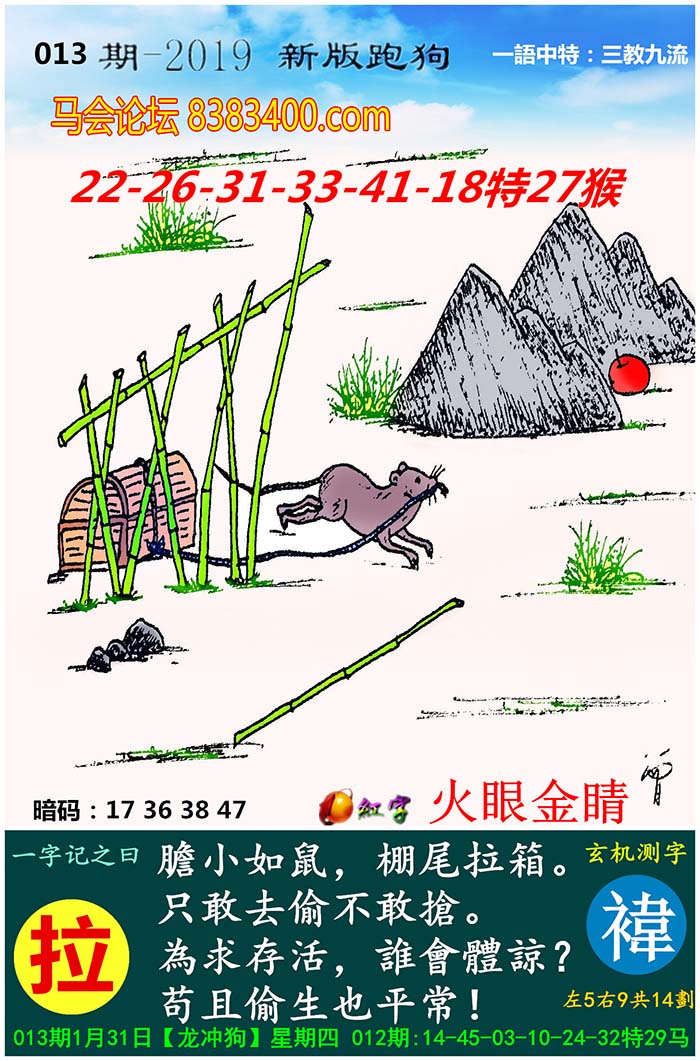 | 主题 :019期:新版跑狗一字記之曰【活】玄機測字:《議》 |