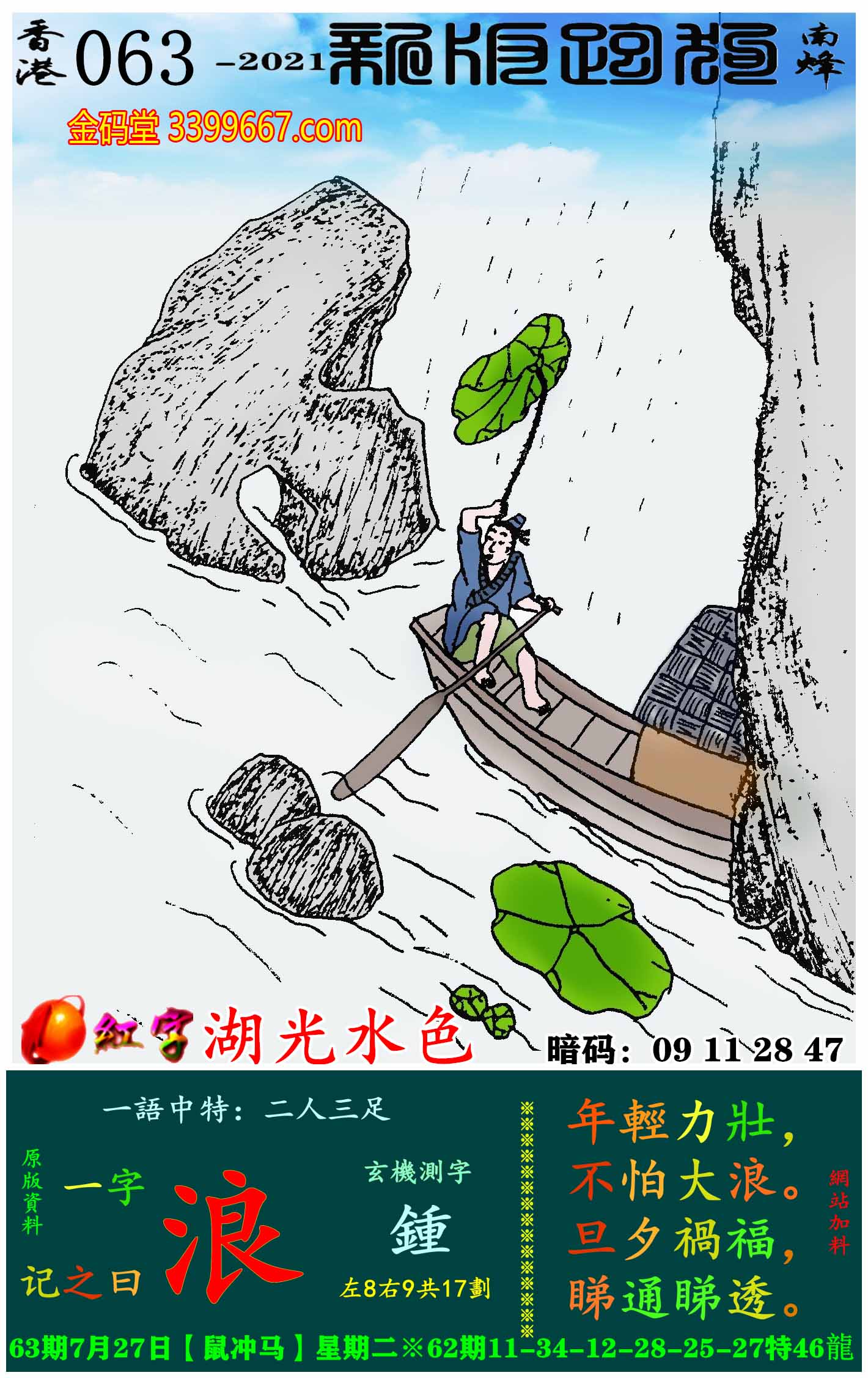 | 主题 :063期:新版跑狗一字記之曰【浪】玄機測字:《鍾》 |