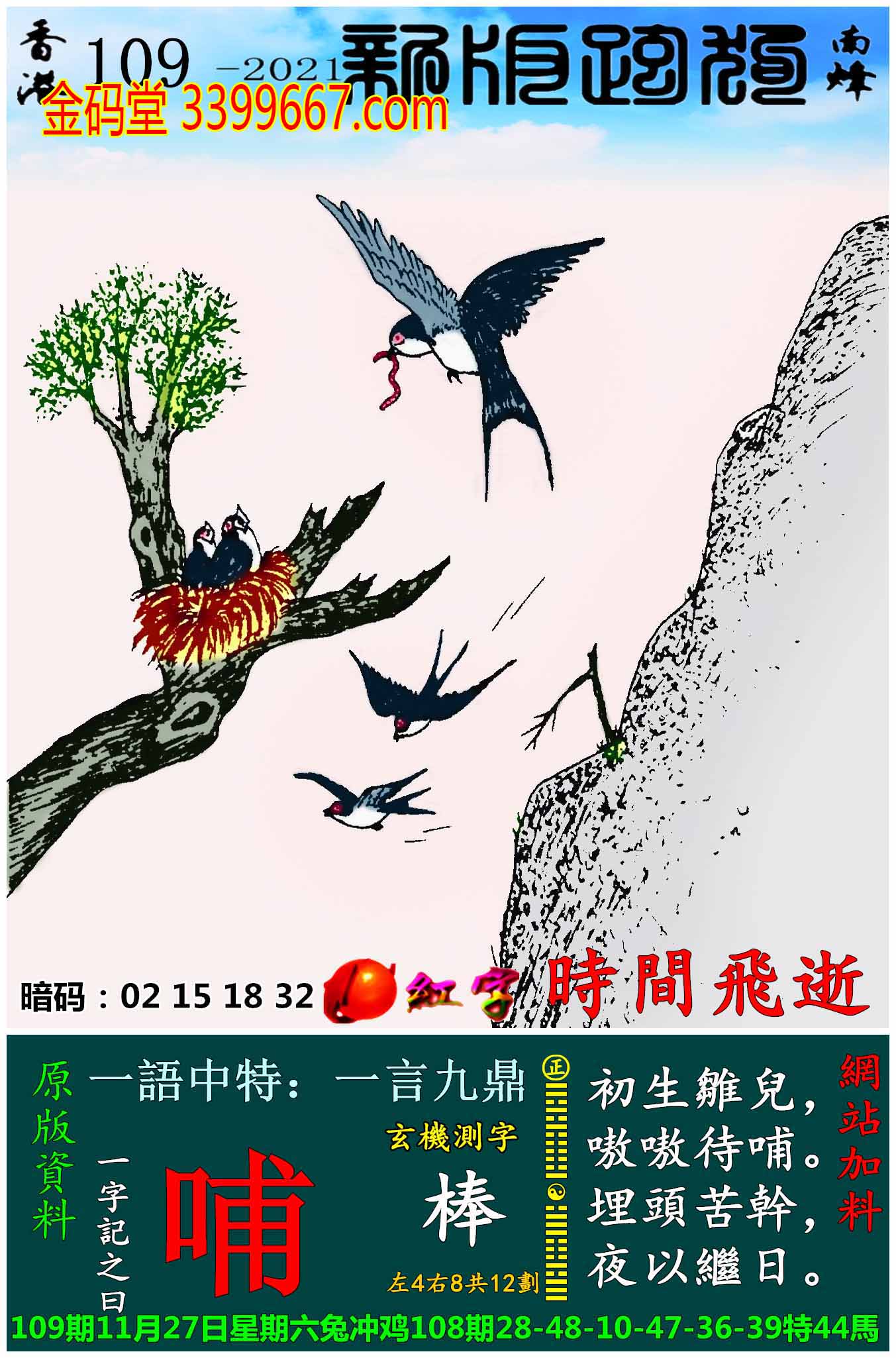 | 主题 :109期:新版跑狗一字記之曰【哺】玄機測字:《棒》 |