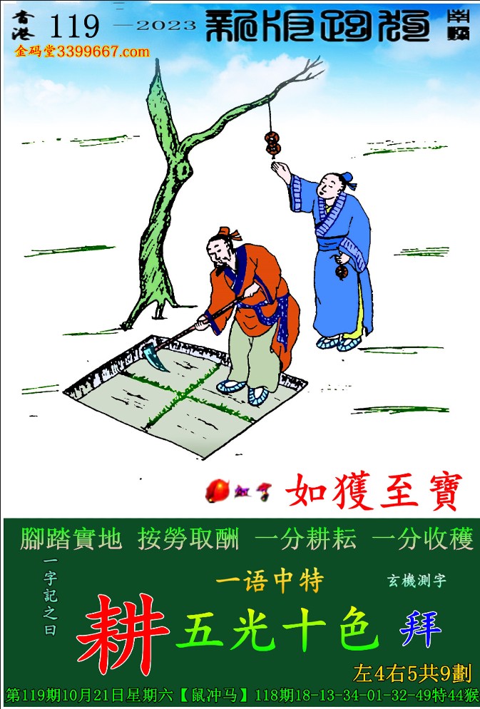 | 主题 :119期:新版跑狗一字記之曰【耕】 玄機測字:《拜》 |