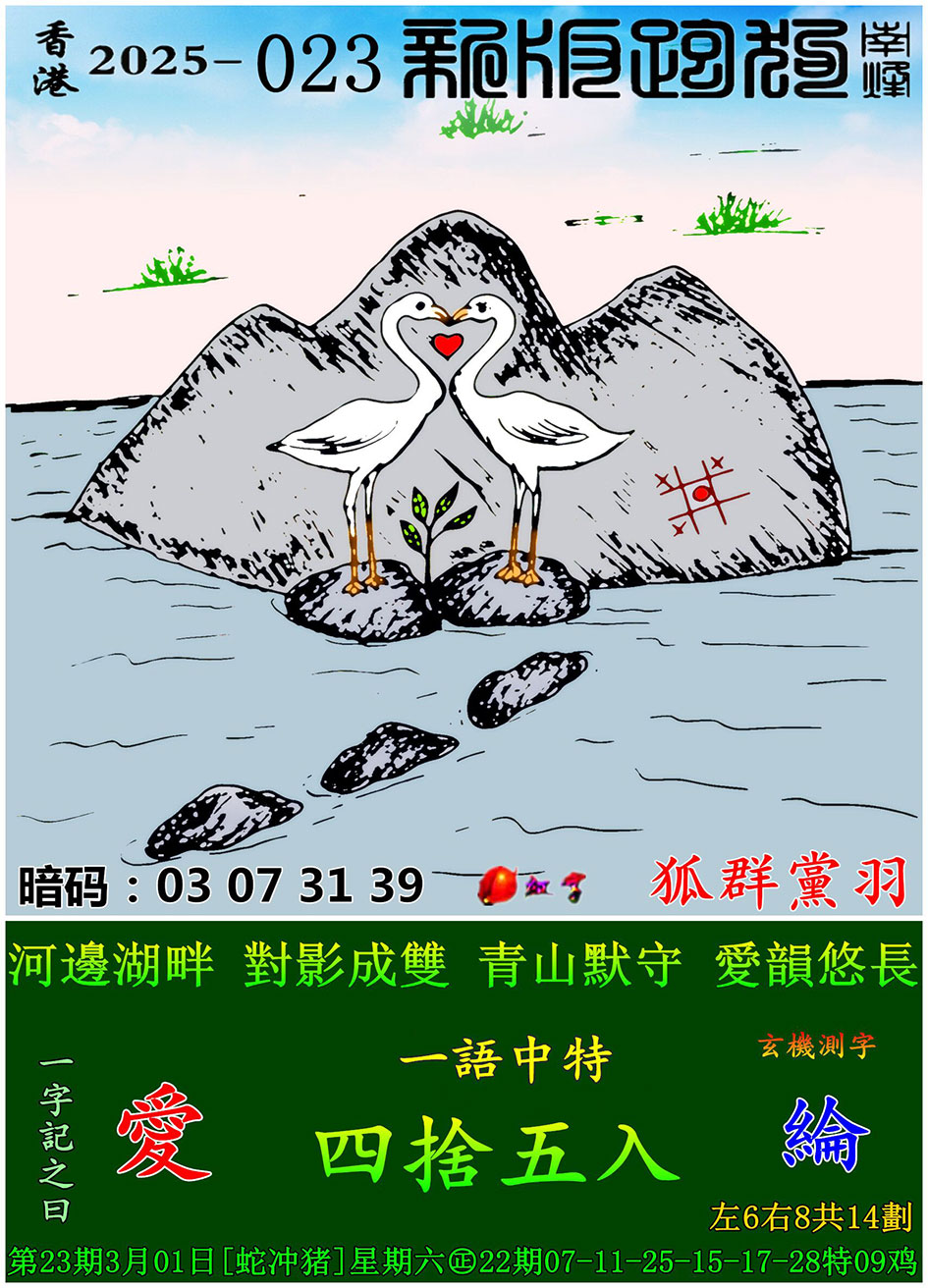 | 主题 :023期:新版跑狗一字記之曰【愛】 玄機測字:【綸】 |