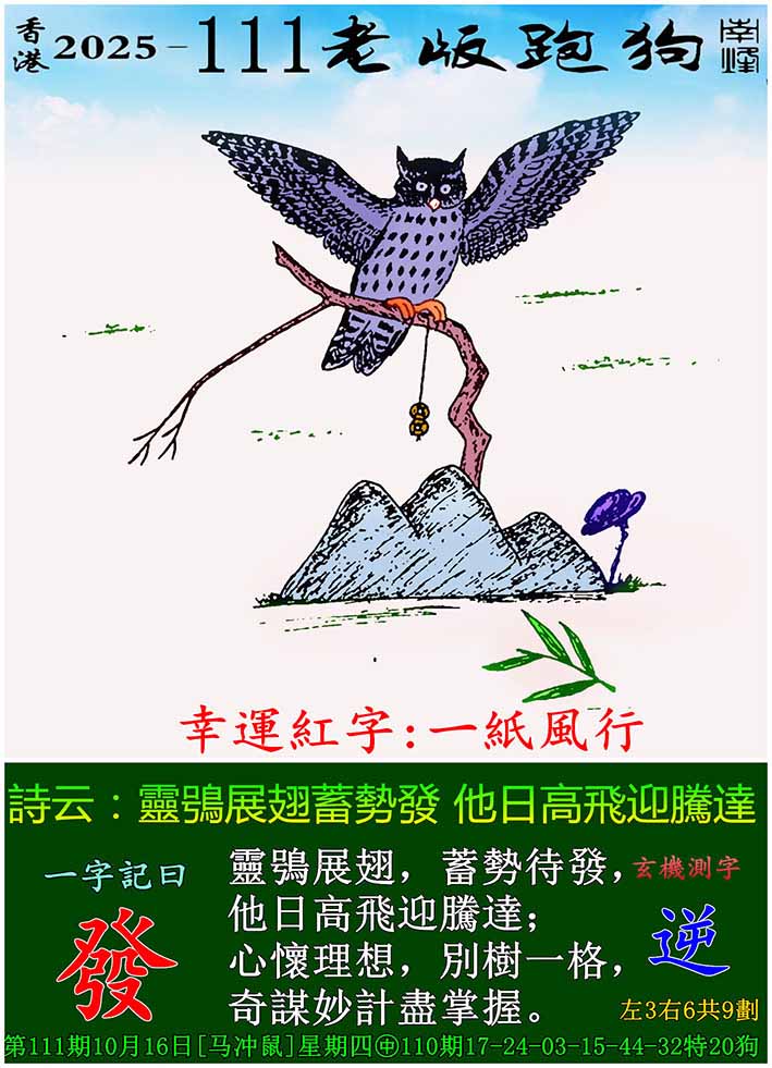 主题 :111期老版跑狗一字記之曰:【發】 玄機測字:《逆》 |
