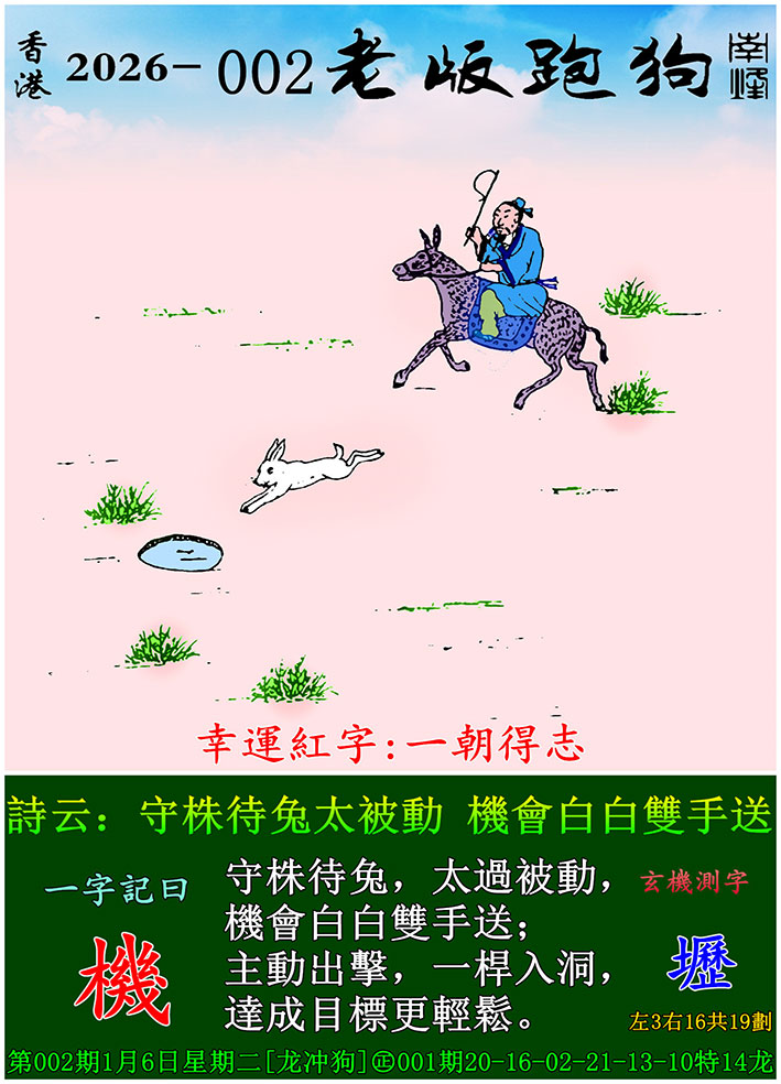 002期老版跑狗一字記之曰:【機】